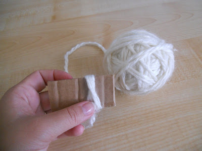 Wind the string around the cardboard. Using the chunky weight yarn, I wound approx. 25 times around.