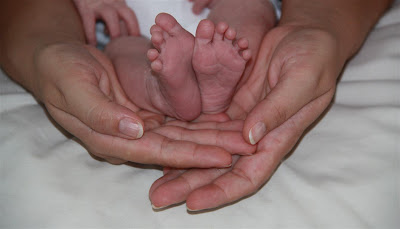 I can't believe our little girl is already 5 weeks old! She's a sweetheart, a cuddle-bug, and one very determined girl. She has one of the loudest cries I've ever heard from a baby! As of last week she weighed 8lbs., 13oz. - up over two pounds from when we left the hospital (she lost some weight during our stay there)! Needless to say she's eating well. :) I'm exclusively nursing her on demand around the clock. She only wakes up a couple of times in the night to eat and then, thankfully, always goes right back to sleep. We're co-sleeping and I think that's the reason I feel surprisingly well rested each morning.