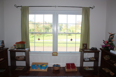sensorial shelves. I know the shelves are, in general, a bit out of traditional order, but this is the way that worked best for our room.