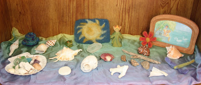Generally, I only allow things found in nature or things handmade with natural materials to be put onto the shelf. Here are some close-ups of the goodies on our shelf.