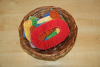 Cards & Counters. It's true we're a bit past this kind of work, too, but if I've said it once I've said it a million times - repetition is a good thing. Plus, I have a bazillion of these fruit counters and I've been dying to use them. :) I bought them at a garage sale a few months ago, but I think you can buy them from Lakeshore Learning.