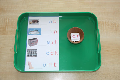 Moveable Alphabet. I think this is my favorite of all Montessori materials. James loves spelling out words.